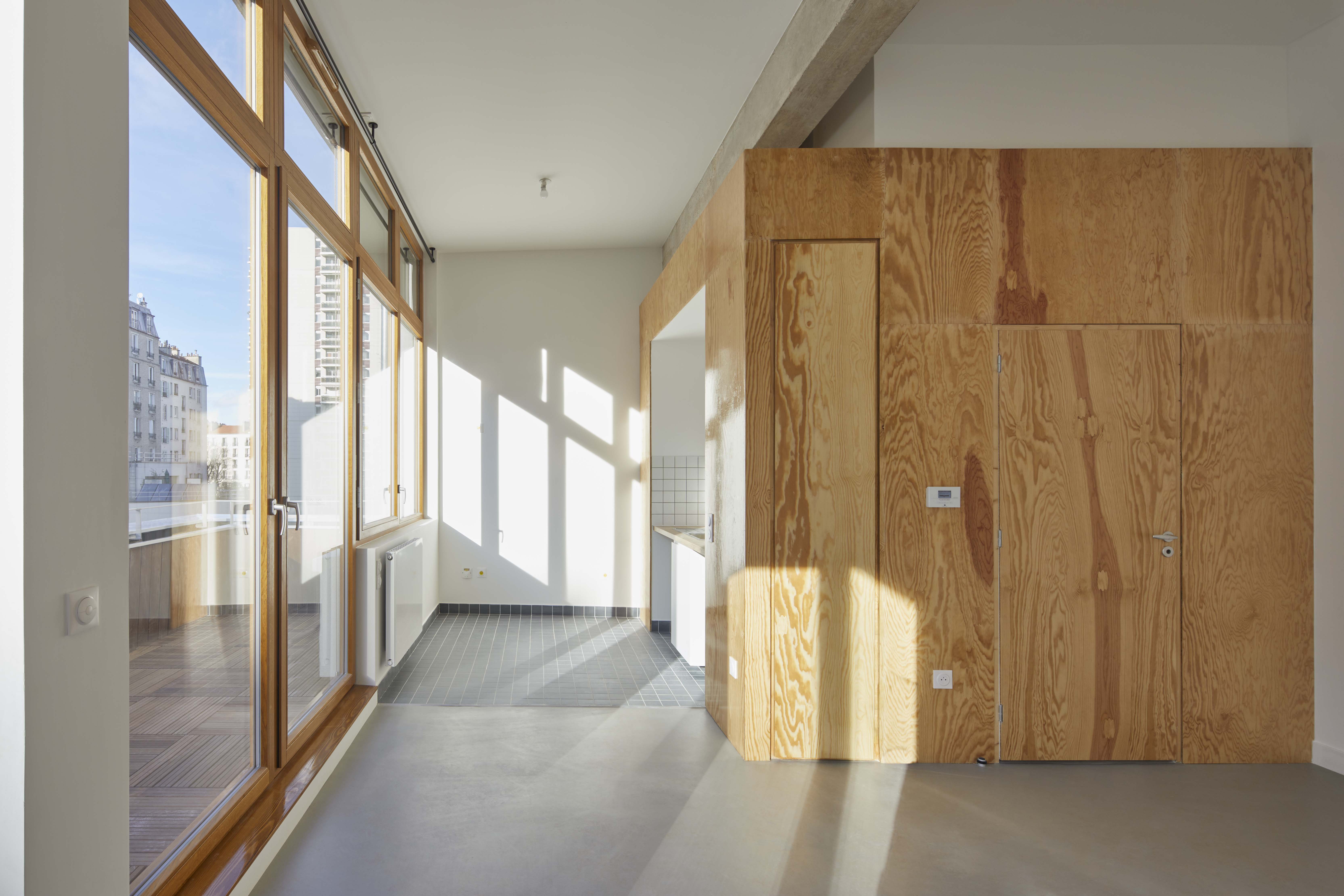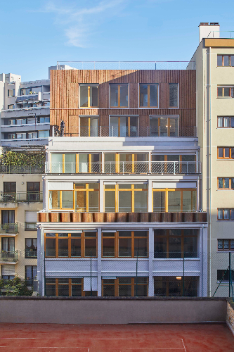 En général, une surélévation d’immeuble est une opération délicate et nécessite un certain savoir-faire. Celle du 44, rue de l’Amiral Mouchez, s’inscrit parfaitement dans la continuité des attiques en gradins tout en apportant un véritable contraste avec son voisinage en privilégiant des matériaux naturels comme le bois thermotraité qui fait écho à une démarche écoresponsable.