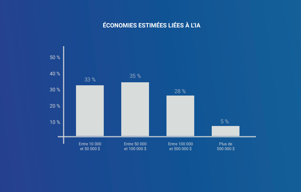 L'étude révèle aussi que les entreprises qui y ont déjà investi tirent des « bénéfices mesurables », de leur avancée dans le domaine. Environ deux tiers de celles-ci ont économisé au moins 50 000 dollars grâce à l’IA. Près de la moitié gagnant entre 500 et 1 000 heures sur leurs projets avec l'automatisation de certaines tâches.