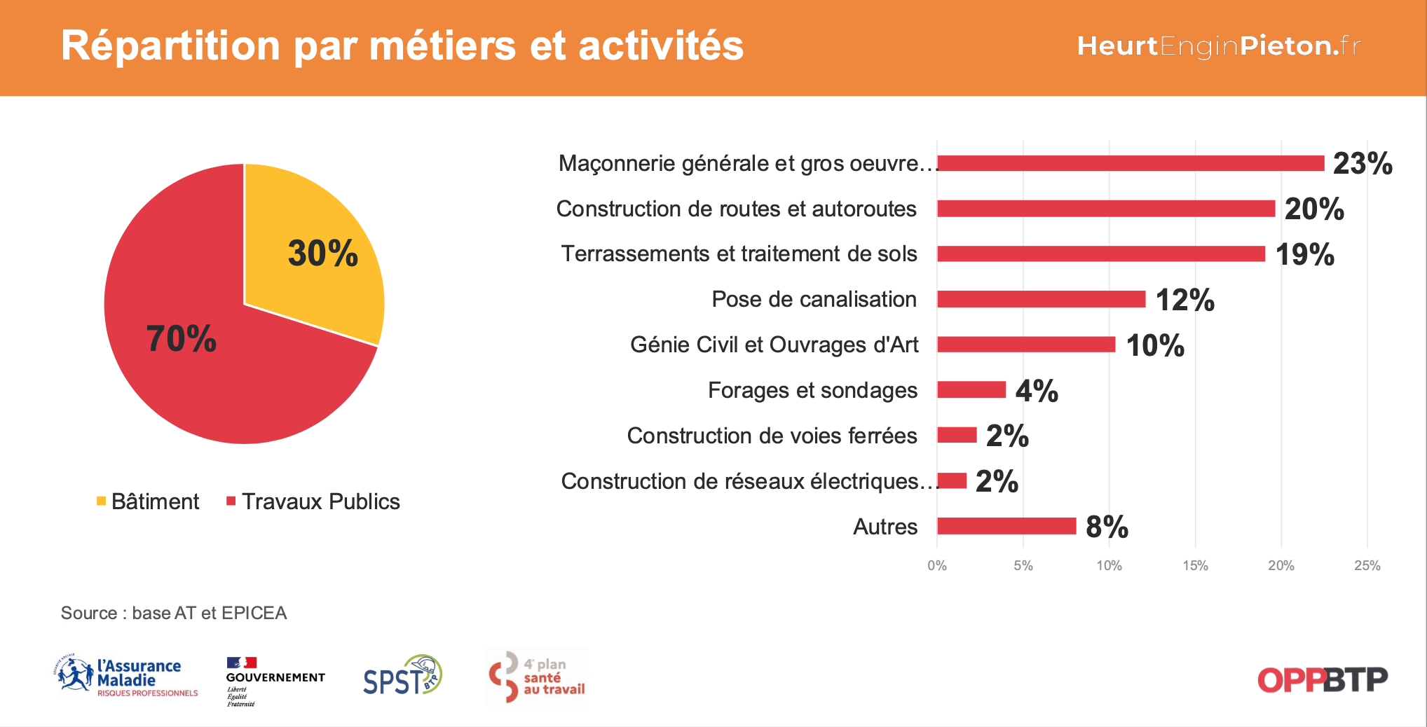 Lors de la présentation de la campagne, Sébastien Marie, responsable du domaine Travaux publics à la direction technique de l’OPPBTP, détaille la situation : les travaux publics concentrent environ 70 % de ces accidents, contre 30 % pour le bâtiment. Toutes les tailles d’entreprises sont concernées : 40 % des accidents surviennent dans des entreprises de plus de 500 salariés, 35 % dans des structures de 20 à 499 salariés, et 25 % dans des structures de moins de 20 salariés.