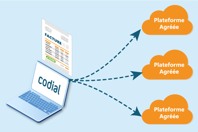 Avec la facturation électronique, certains éditeurs imposent une plateforme unique à leurs clients. Pas Codial. Grâce à un connecteur générique inclus en standard, vous restez libre de choisir la Plateforme Agréée qui vous convient. Vous bénéficiez ainsi d’une intégration fluide, interopérable et sécurisée, sans être enfermé dans un choix unique.
