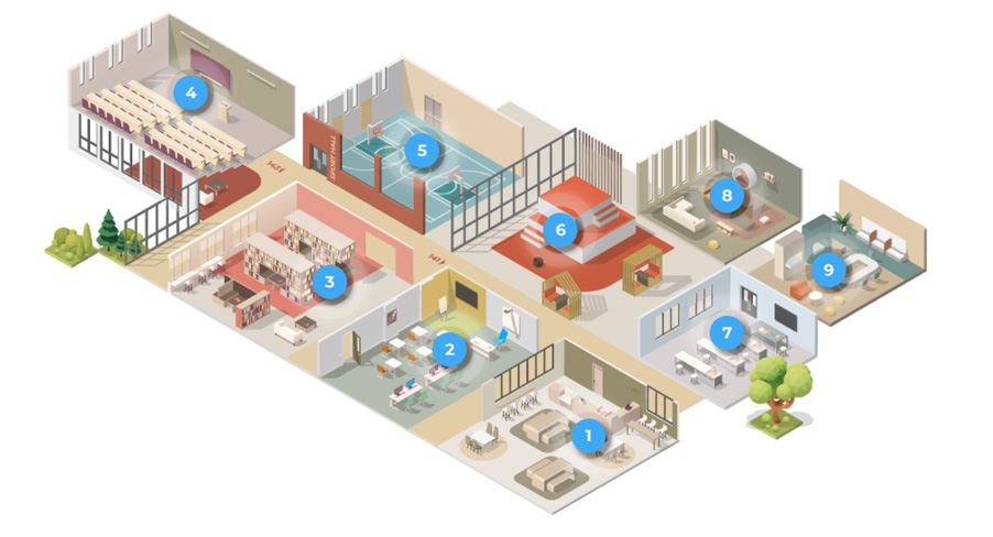Un établissement scolaire, c’est une multitude d’usages : salles de classe, couloirs, CDI, laboratoires, crèches, espaces périscolaires… Enseignement by Tarkett propose une gamme complète de revêtements capables de répondre à chaque besoin. Grâce à une large palette de designs, de textures et de couleurs, les établissements peuvent façonner des lieux accueillants qui reflètent leur identité et soutiennent les parcours pédagogiques.