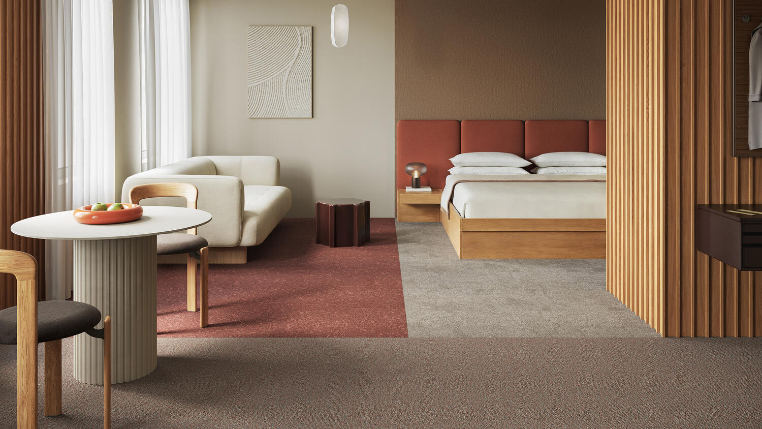 Grâce à une palette de tons soigneusement sélectionnés, Emerge permet de structurer les espaces et de créer des ambiances harmonieuses, adaptées aux environnements professionnels tels que les bureaux, les établissements de santé, l’enseignement ou encore l’hôtellerie.