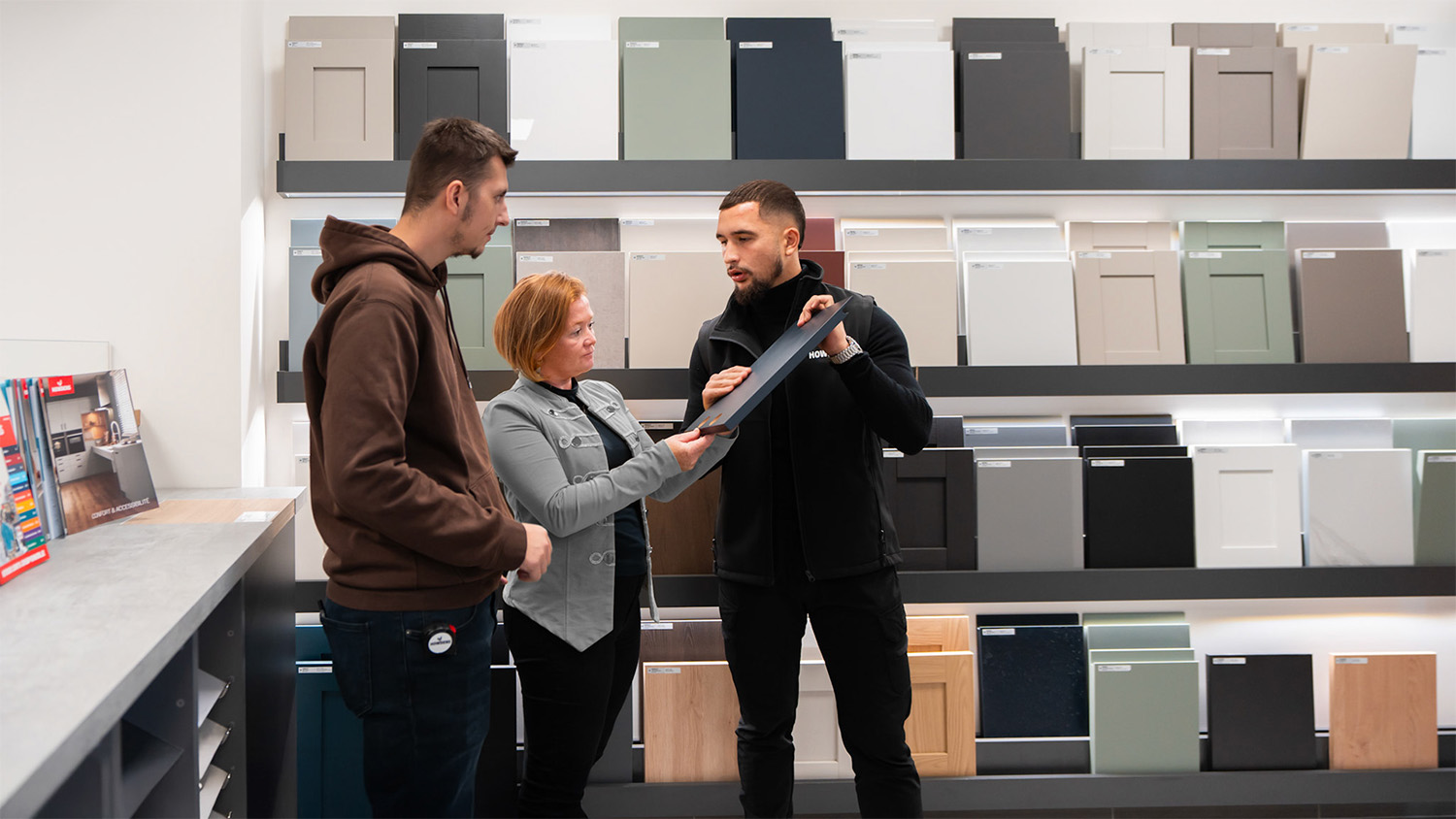 L’un des grands atouts d’Howdens repose sur son concept de comptoir professionnel réservé aux artisans. Ce modèle tripartite, pensé pour la performance et la proximité, permet un gain de temps considérable et une tranquillité d’esprit dans la gestion des chantiers des artisans pour satisfaire leurs clients finaux. Chaque dépôt Howdens met à disposition :