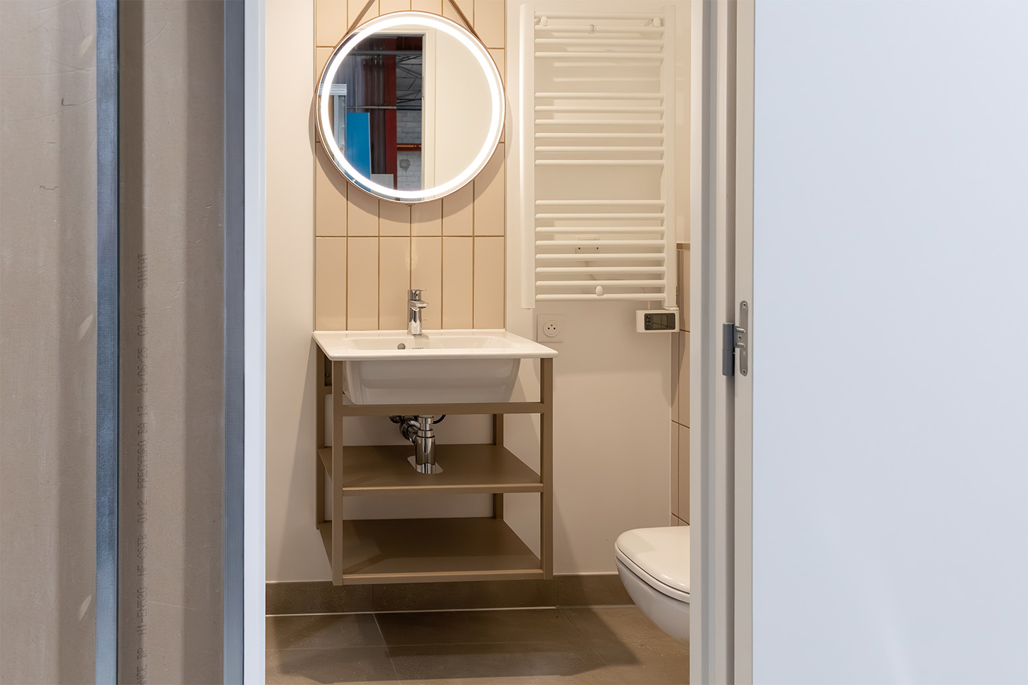 C'est ici que l’expertise d’HVA CONCEPT en conception et fabrication de salles de bains préfabriquée et sur-mesure prend tout son sens. Pour livrer les 343 modules Hva'ini® en parfaite adéquation avec le planning du chantier, son usine française basée à Fresnay-sur-Sarthe a mobilisé deux lignes de production 100% dédiées à ce projet. Ce processus industriel entièrement maîtrisé assure une qualité de finition irréprochable et constante sur l'ensemble de la série, tout en sécurisant les délais grâce à une coordination optimisée avec les autres corps d'état.