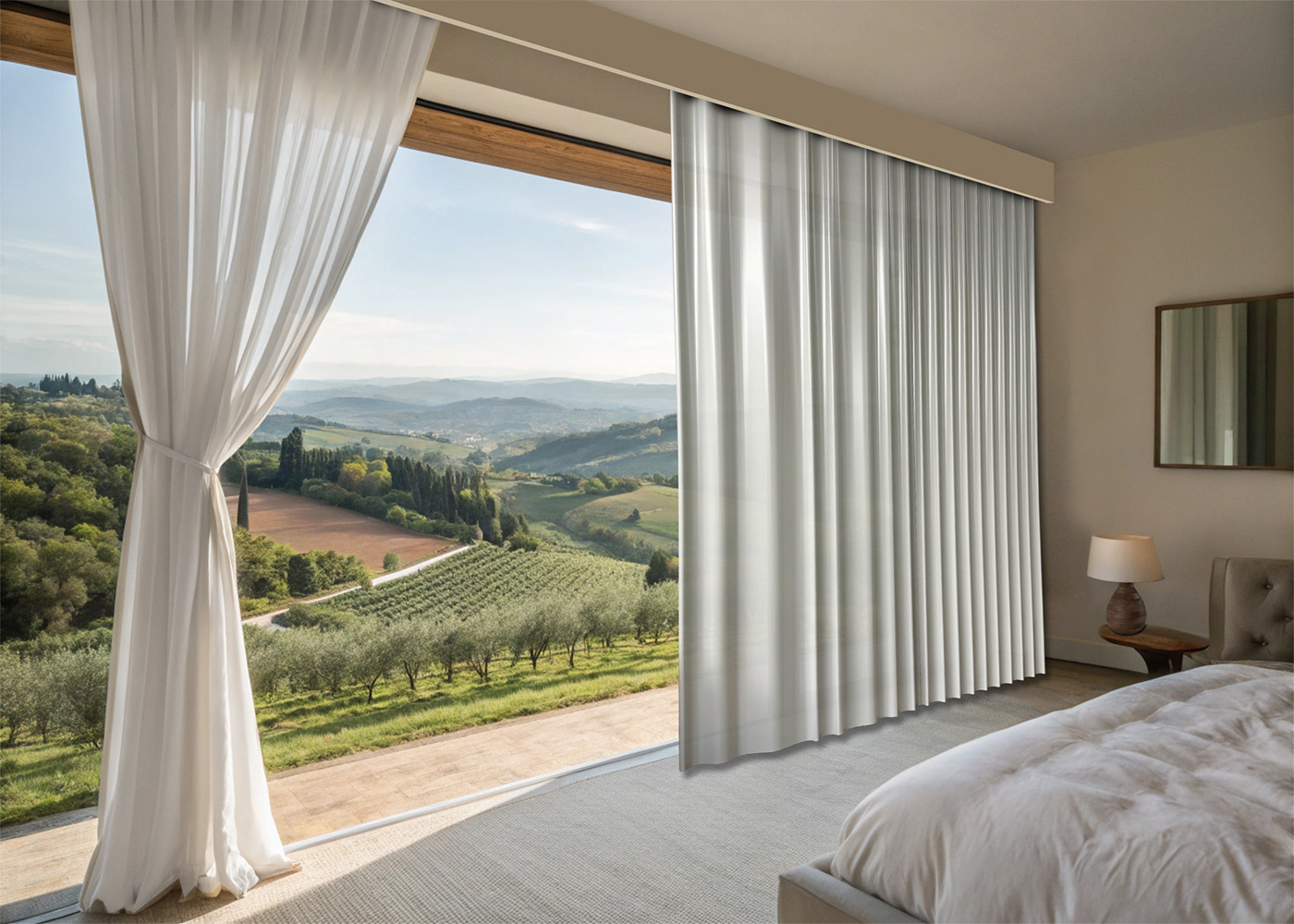 Inspirée des rideaux flottants des palais vénitiens et de la lumière toscane, TENDA est la première tôle de bardage à reproduire fidèlement l’effet d’un tissu en mouvement. Chaque panneau évoque le tombé naturel d’une étoffe noble, apportant chaleur, élégance et mouvements à vos futurs bâtiments.