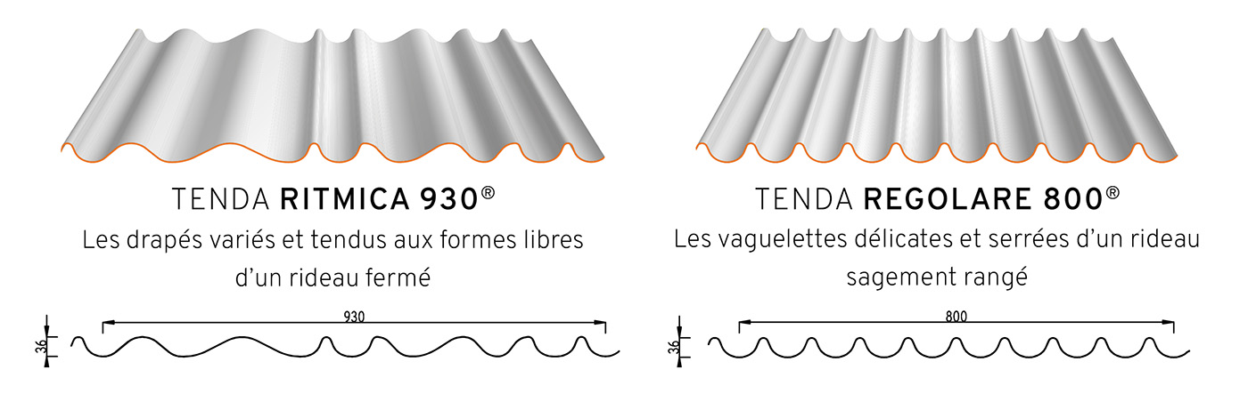 Composée de 2 modèles à combiner pour créer son propre rythme, la gamme propose l’allure régulière, la douce vaguelette d’un rideau sagement rangé, et la forme libre et aléatoire d’un rideau ouvert.