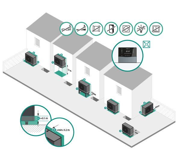 Une flexibilité absolue d’implantation grâce à la fonction Flexible Space de Vaillant. Avec ce concept de sécurité unique, nos pompes à chaleur s'installent absolument partout, sans aucune contrainte de zone d'exclusion liée au R290.