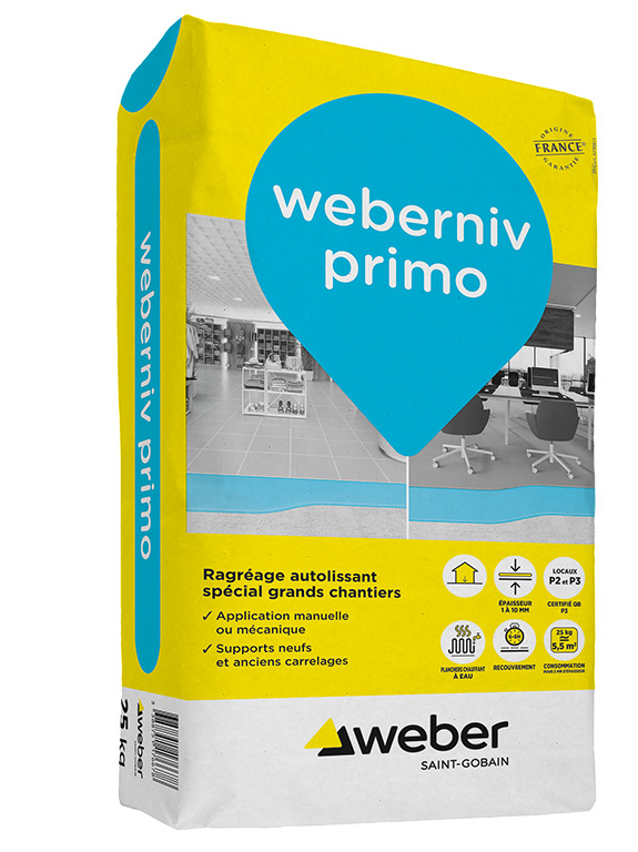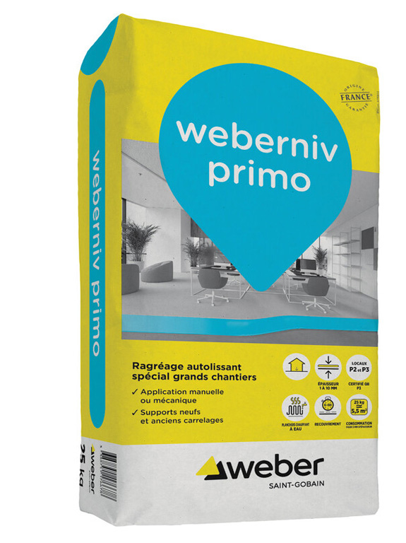 weberniv primo : Ragréage P3 autolissant des sols intérieurs spécial grands chantiers
