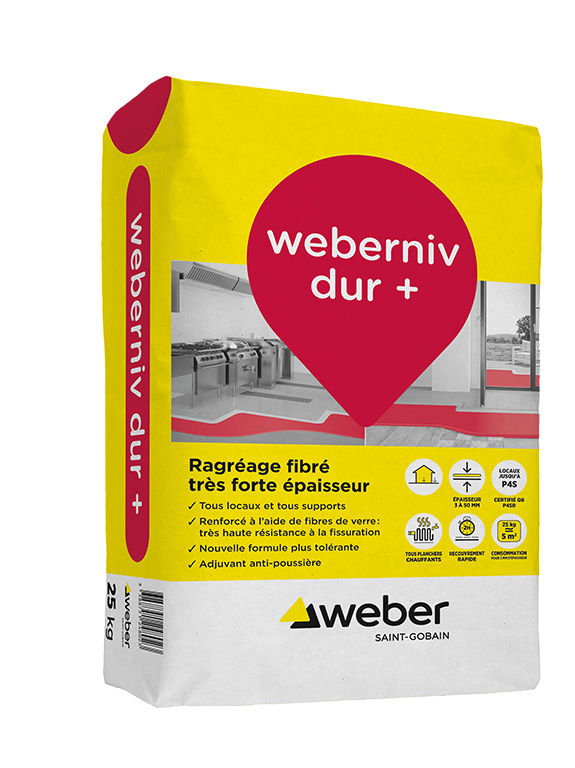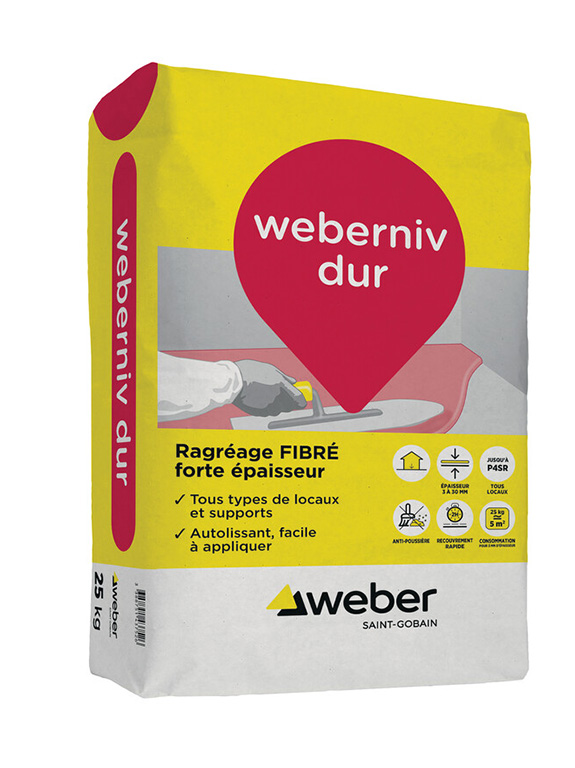 weberniv dur+ (nouveau) : Ragréage fibré P4SR très forte épaisseur tous locaux et tous supports