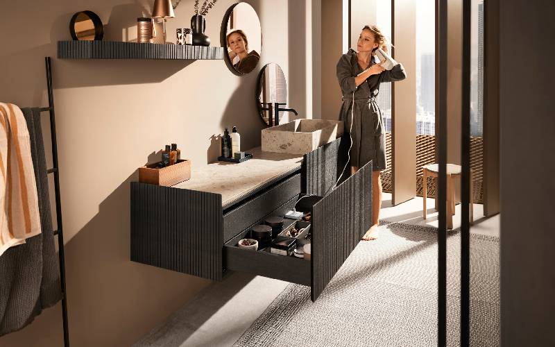 AMPEROS AC est la solution à la fois élégante et pratique pour alimenter les appareils électriques dans le meuble. Grâce à la prise de courant intégrée, la source de courant est disponible là où elle est nécessaire, et ce de manière invisible, puisque le passage de câble est dissimulé sous un tiroir ou sous une tablette.