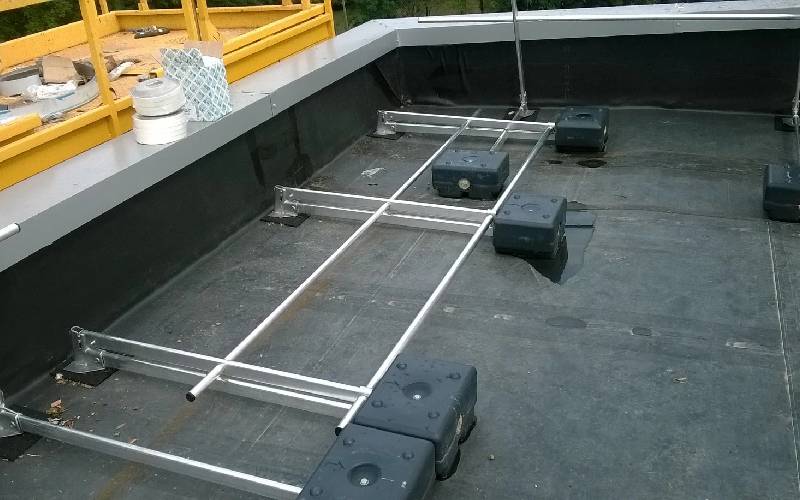 Protégez vos toitures existantes sans percer la structure grâce au garde-corps aluminium autoportant Anoxa.