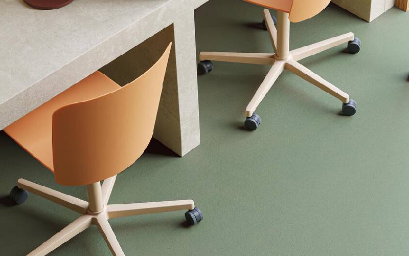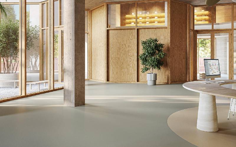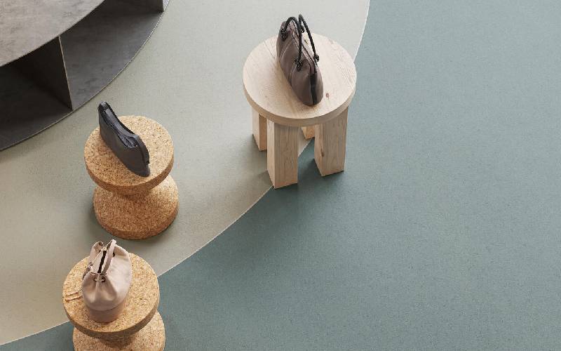 Ce revêtement de sol biosourcé associe des granulés de liège à des ingrédients naturels tels que l'huile de lin, la résine de pin et la poudre de bois, offrant une texture unique et des propriétés apaisantes dans les environnements intérieurs éducatifs et commerciaux.