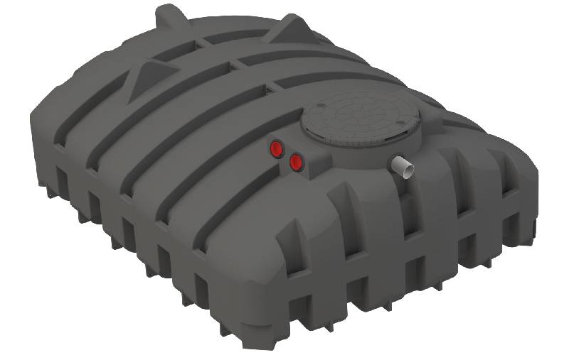 Cuve plate à structure nervurée renforcée à quatre piliers intérieurs conçue pour résister aux conditions les plus exigeantes, y compris une installation en nappe phréatique ou sur terrains difficiles.