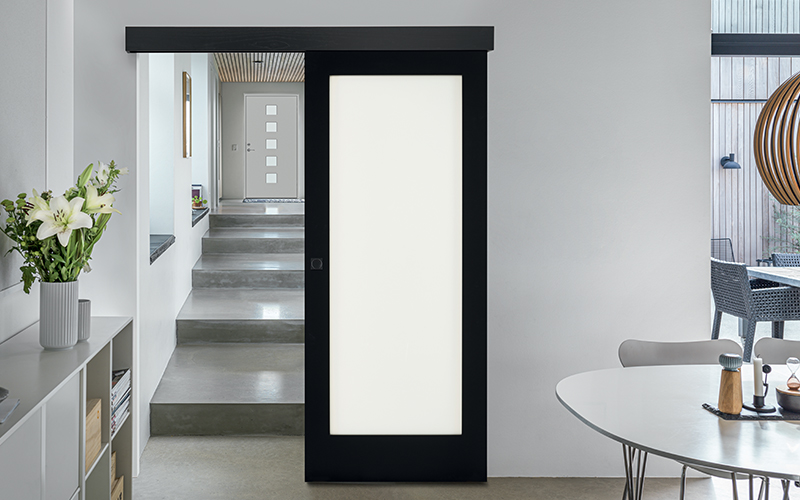 Des lignes épurées, des finitions noir ou blanc et une approche graphique affirmée. La porte devient un élément architectural à part entière, parfaitement intégrée aux projets contemporains.