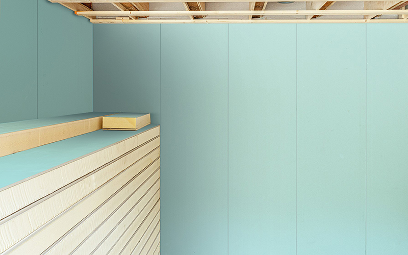 Utherm Wall K Gyp H est un complexe d'isolation thermique bi-matière composé d'un isolant en mousse de polyuréthane, contrecollé sur une de ses faces à une plaque de plâtre BA13 H1 pour l'aménagement intérieur (cloison séparative ou doublage collé).